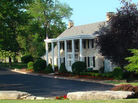 Owners:  The native limestone building was the home of Benjamin Robbins, one of three original surveyors and settlers in Washington Township.  The house was originally part of a 117-acre farm.  A low spot at the back of the lot has a small pond that may have been an area from which the stone for the house was quarried.  It has been embellished with a gazebo and decorative rocks.  Today it is used as a funeral home.